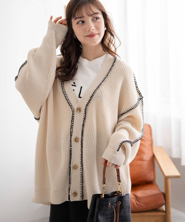 程よいビッグシルエットで仕上げたリブニットカーディガン。