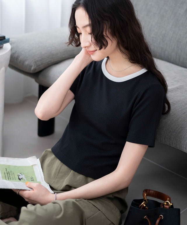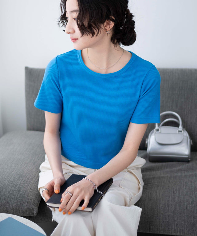 伸縮性のあるリブ生地を使用し、ヘルシーなすっきりとした印象に。