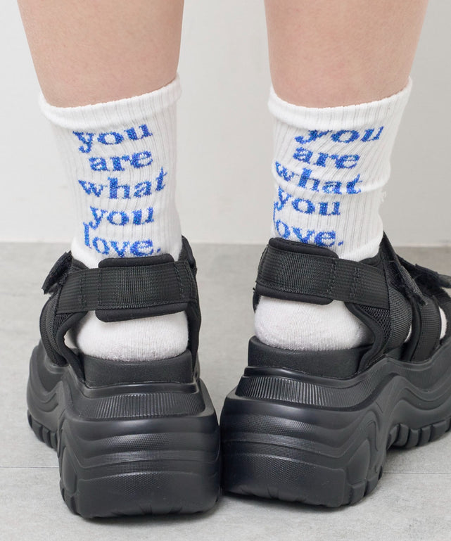 ローファーやスニーカーなどに合わせての着用は、カラーとロゴが目を引くデザインでおすすめです!