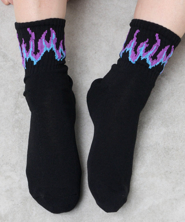 目を引くファイヤーパターンのソックスは、トレンドに左右されないデザイン。