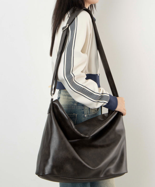 ノートパソコンや書類が余裕で入り、より持ち歩きやすいように丸みを帯びたシルエットデザインのショルダーバッグ。