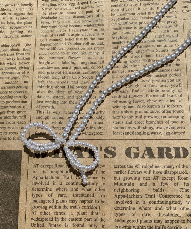 パール×リボンの組み合わせが上品な印象のネックレス。