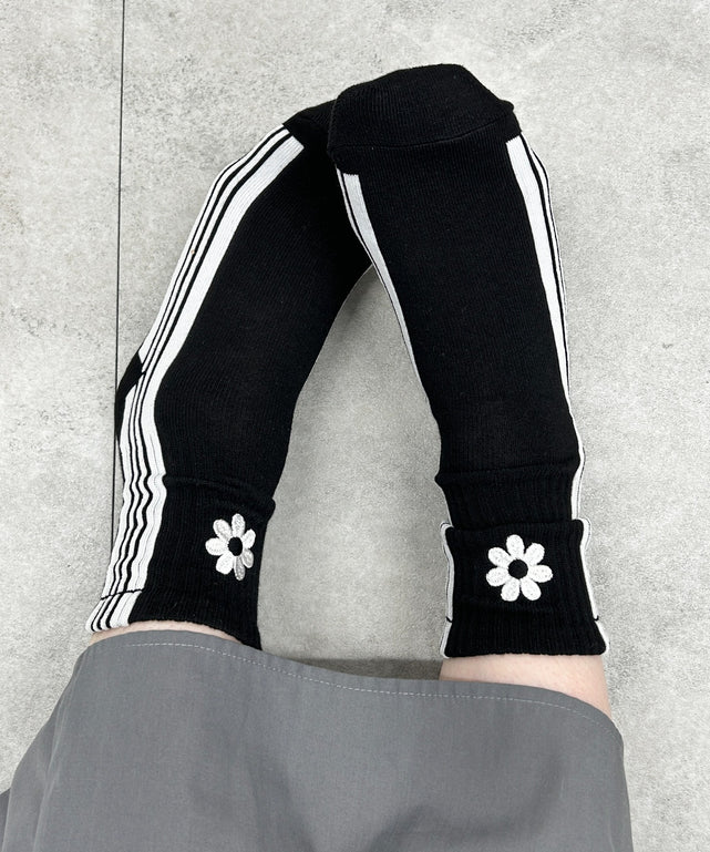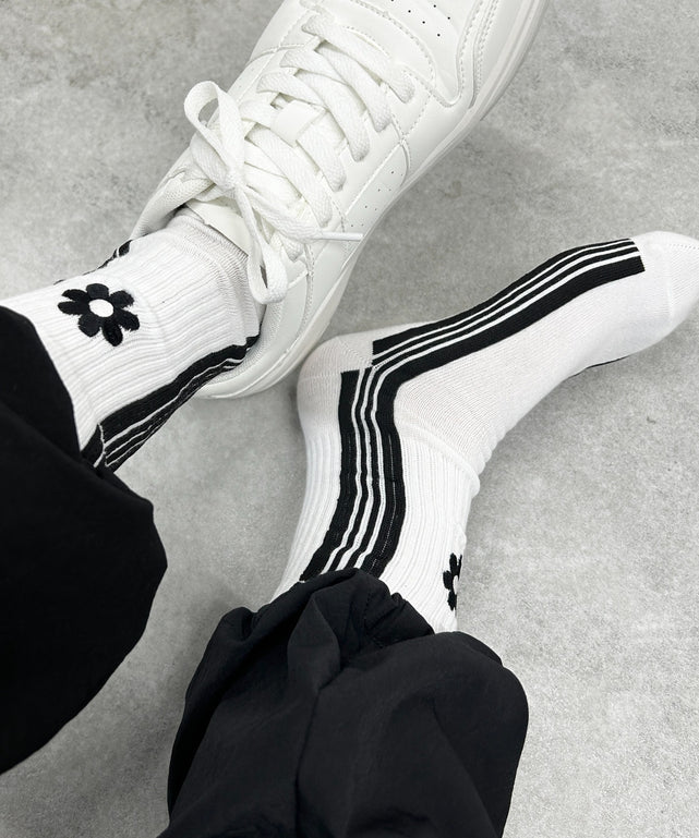 サイドのラインと正面の刺繍フラワーがポイントのソックス。