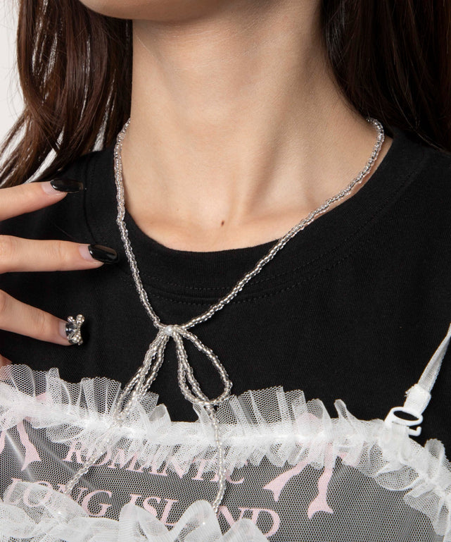 LビーズBIGリボンネックレス