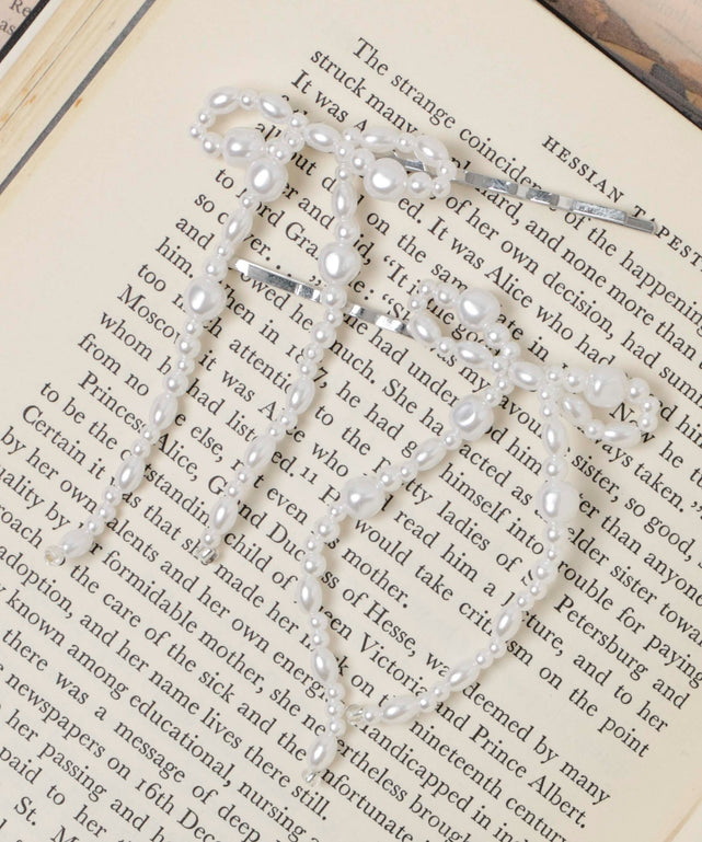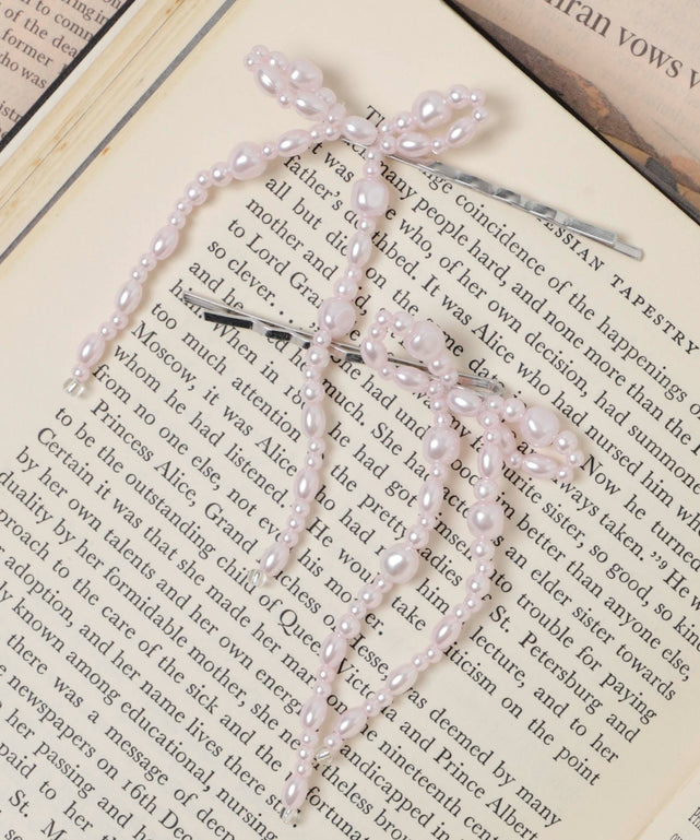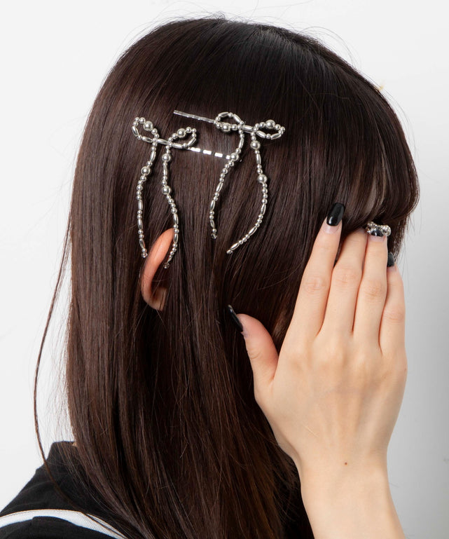 トレンドのリボンをビーズにしヘアピンにしたアイテム。