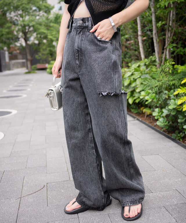 【サイドのカットアウトがトレンドのデニムパンツ♪】