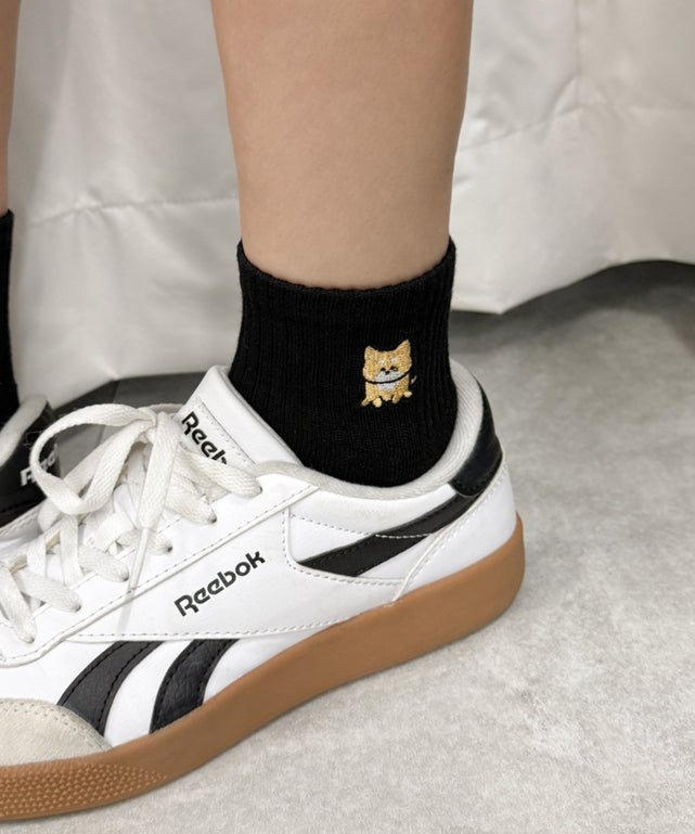 アニマル刺繍アンクル底パイルソックス(23-25cm)