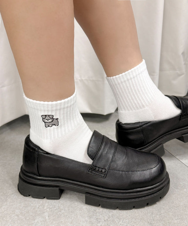 アニマル刺繍アンクル底パイルソックス(23-25cm)/柄1