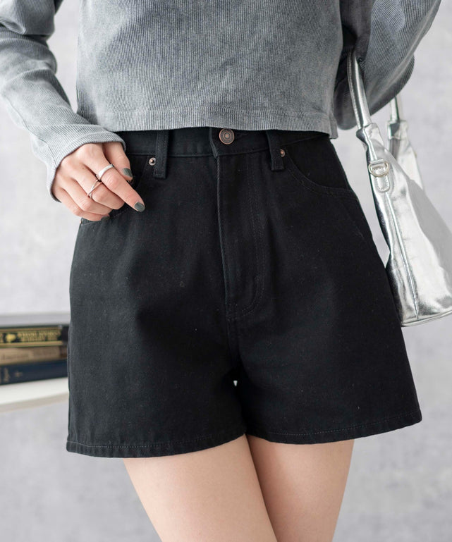 台形デニムショートパンツ