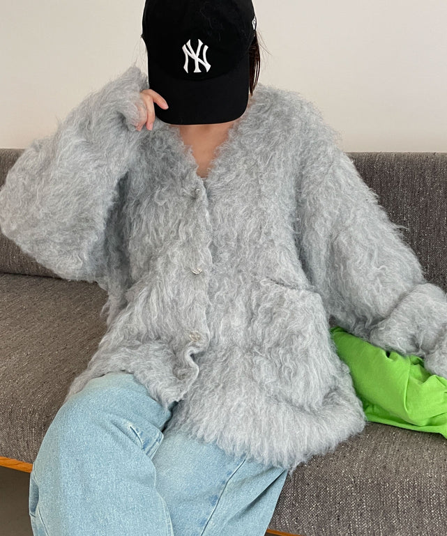 ふわふわの起毛した糸が特徴のボリューミーなニットカーデ!