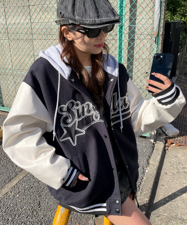 太めのボトムスにあわせてとことんオーバーシルエットにするのも今っぽくておすすめ♪