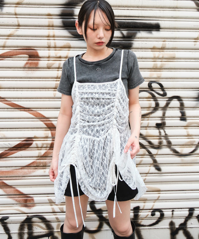 甘さと抜け感を両立する、ドロストデザインが魅力のキャミワンピース。