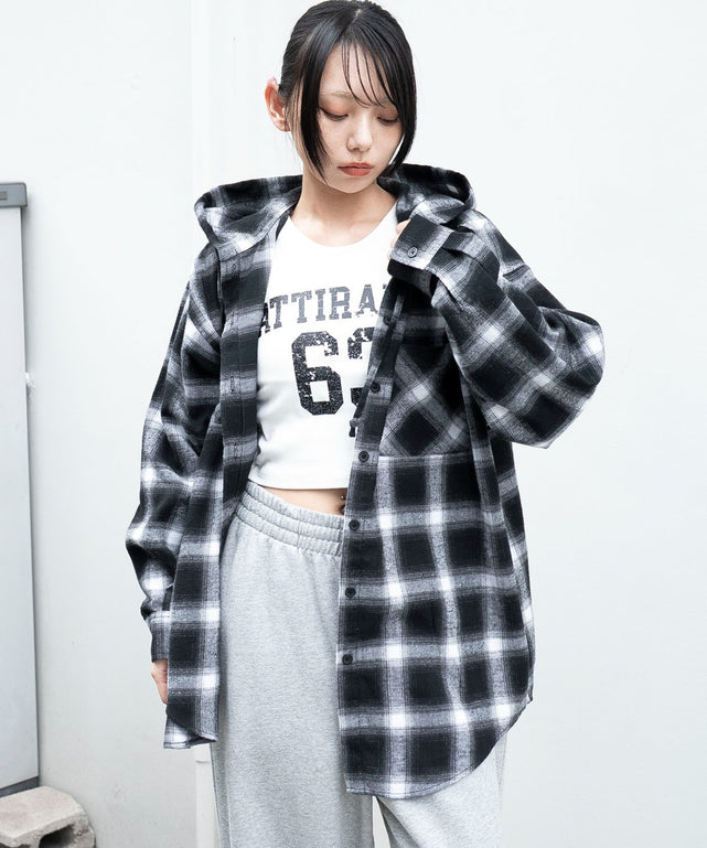 チェックフードBIGネルシャツ
