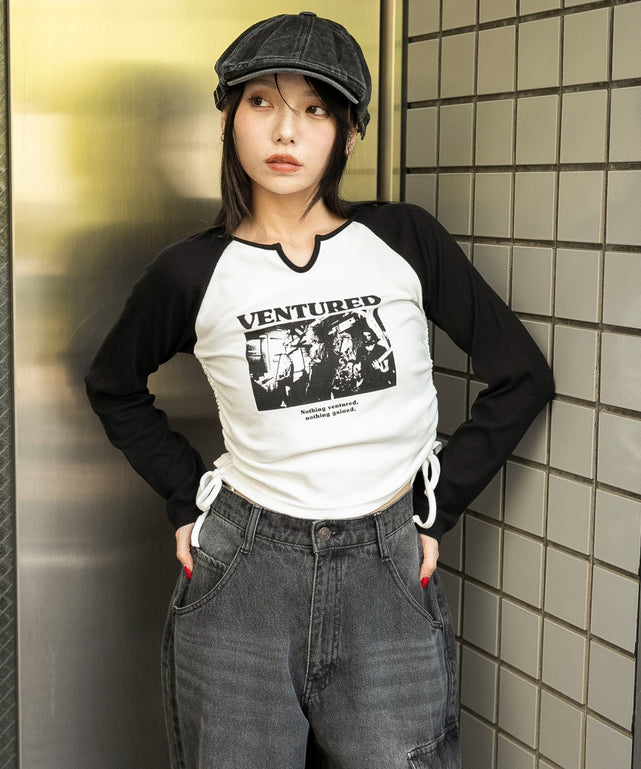 サイドにはドロストデザインを取り入れ、絞ることでシルエットの変化を楽しめるのがポイント◎