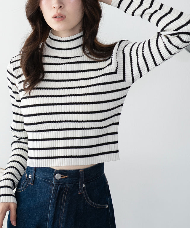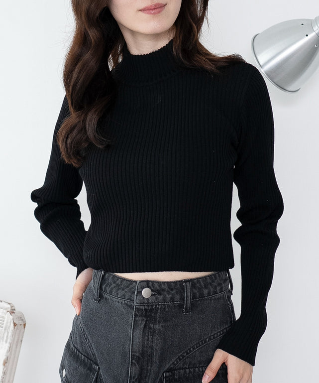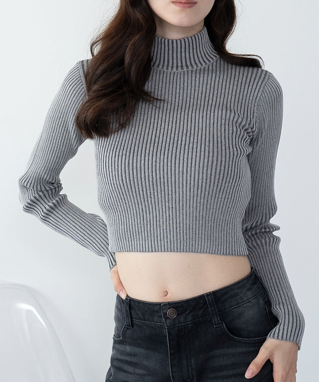 首元を包み込むハイネック仕様で、上品かつモードな印象を演出。