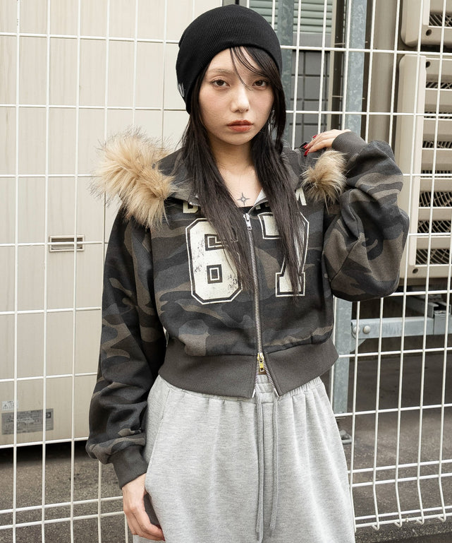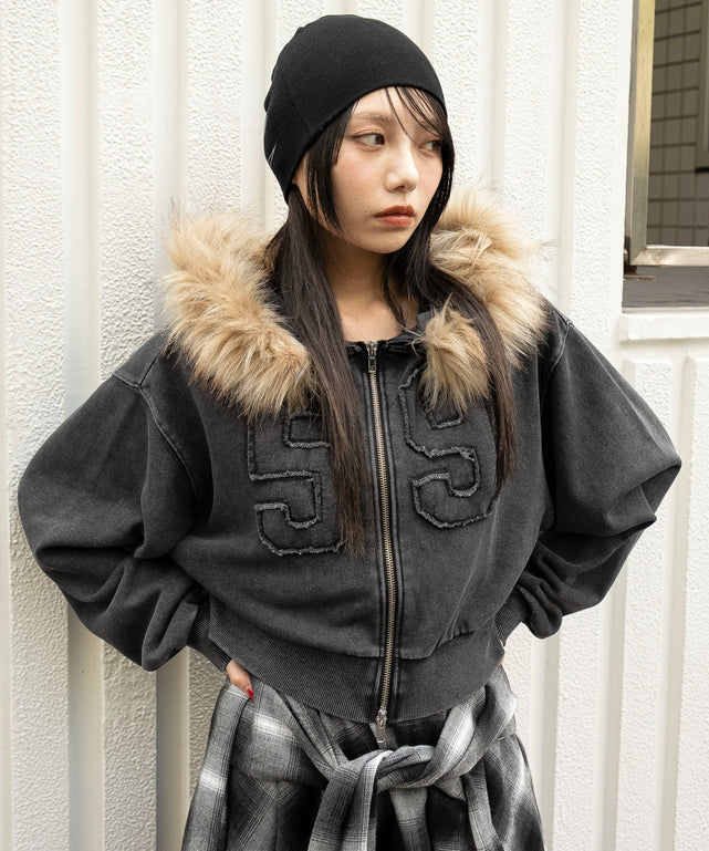 ファーフードショートZIPパーカー