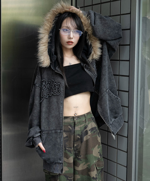 ボリューム感のあるファーフードが視線を惹くBIG ZIPパーカー◎