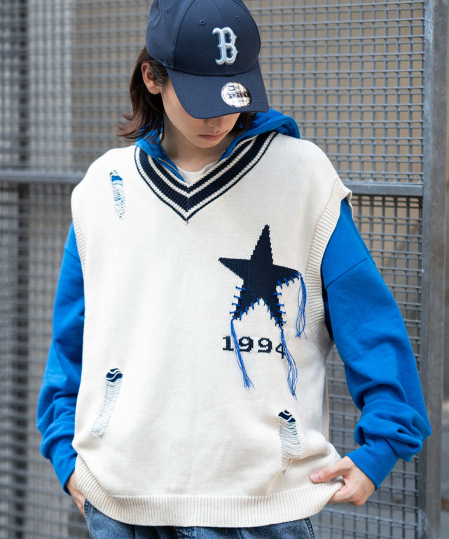 【ダメージ加工と遊び心あるディティールが映えるチルデンベスト】