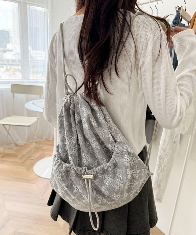 【レース×ドローコードで甘くなりすぎないナップサック】