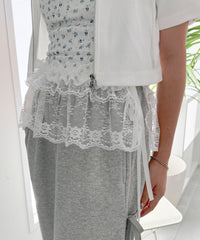 透け感のあるフラワーレースが華やかなアクセントになるミニラップスカート!