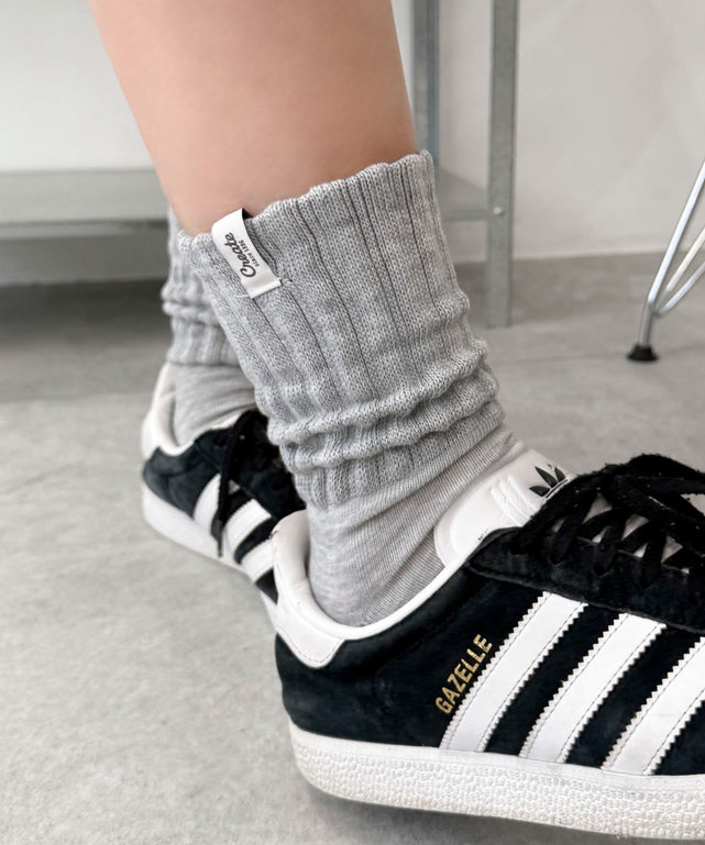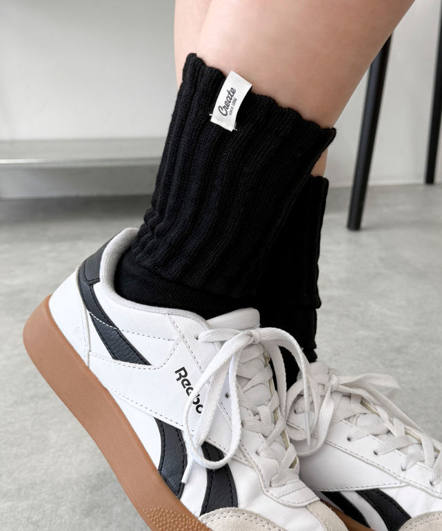 シンプルだけどおしゃれ見えするタグデザインソックス。