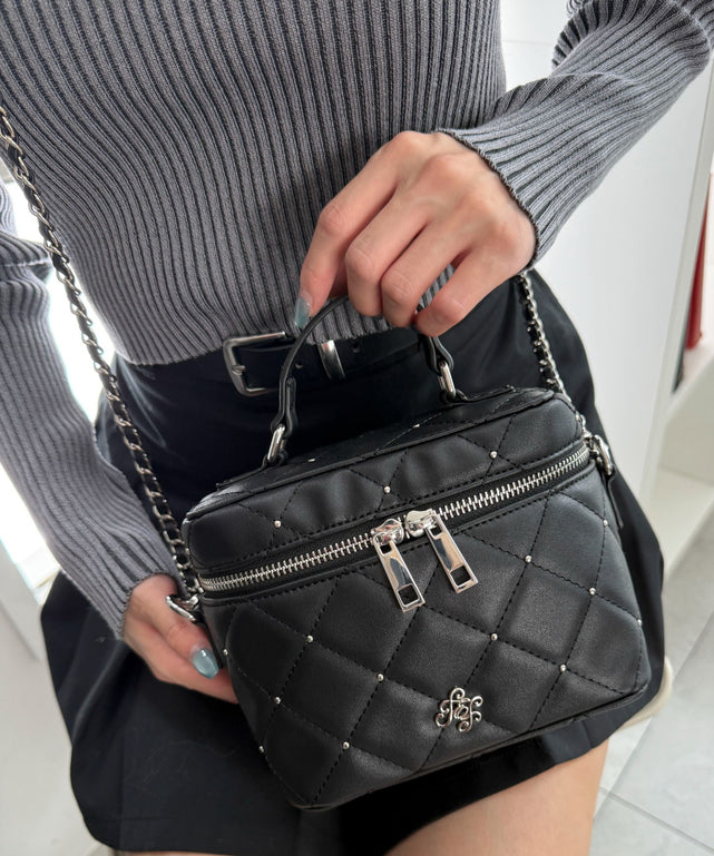 ガーリー系スタイルにぴったりな、高見えキルティング×メタルパーツのバニティショルダーバッグ。
