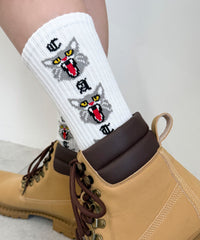 インパクト抜群のデザインが目を引くソックス。