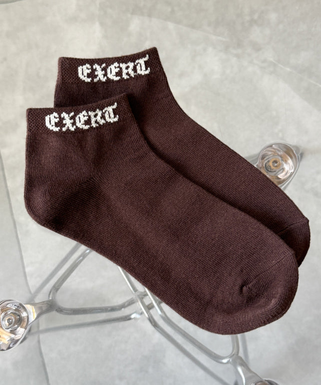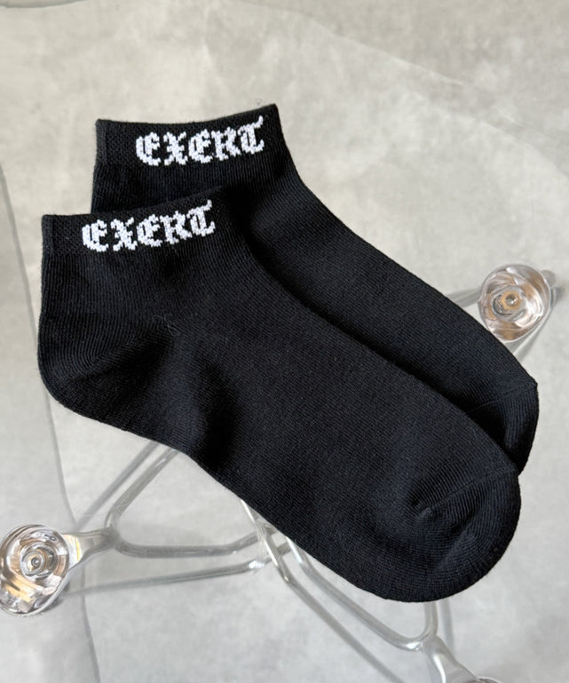 シンプルなデザインに、ロゴでアクセントを効かせたショート丈ソックス。