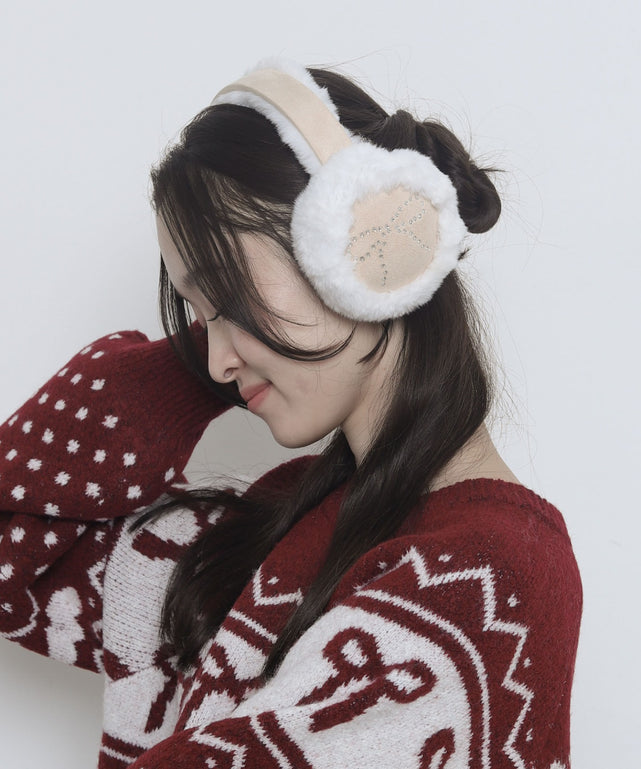 ふわふわのファーにラインストーン付きリボンをあしらった女の子らしさ満点のイヤーマフ。