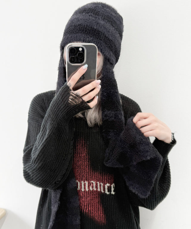 トレンド感あるボーダー柄に、ロングイヤーデザインをプラスしたストリートライクなニットキャップ。