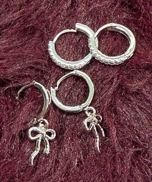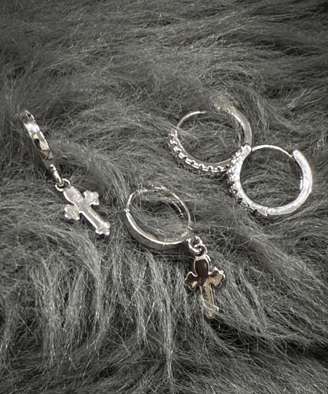 スター、ハート、リボン、クロスの4種類のモチーフが楽しめるリングピアス。