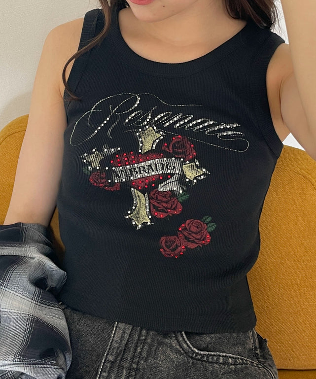 ラインストーンハートグラフィックタンク