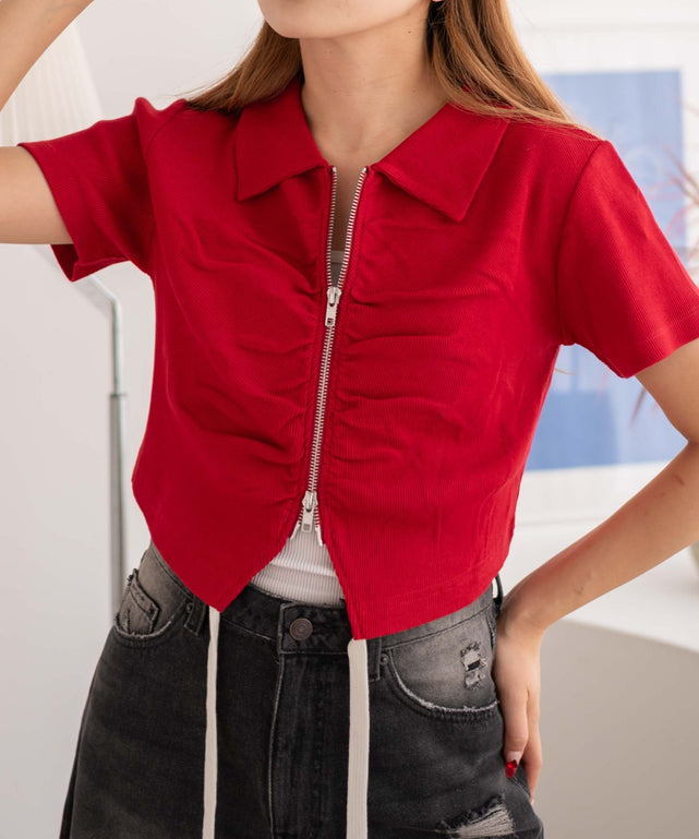 WZIPギャザートップス/レッド モデル:155cm F着用