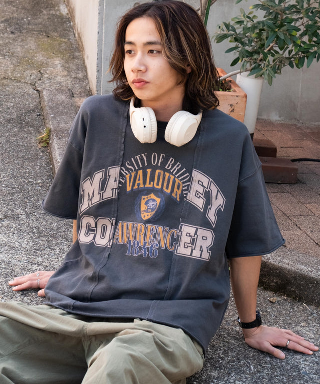 【古着ライクなドッキングカレッジスウェットTシャツ】