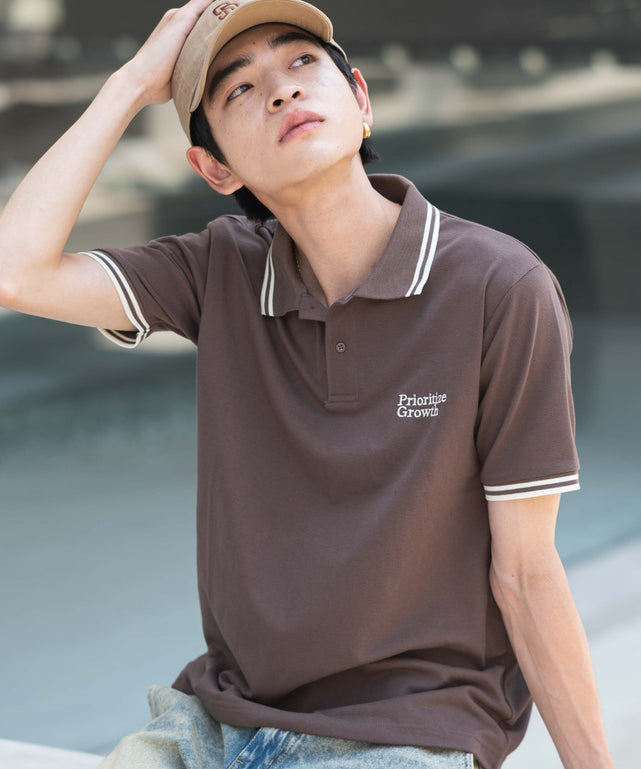 【さりげない刺繍デザインとライン入りの襟、袖がアクセントになった王道カジュアルなカノコポロシャツ】