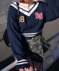 ワッペンチルデンVネックニット/ホワイト  モデル:155cm F着用