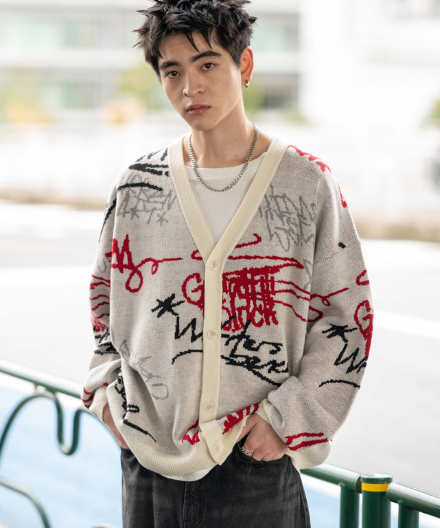 リラックスフィットパターンカーディガン