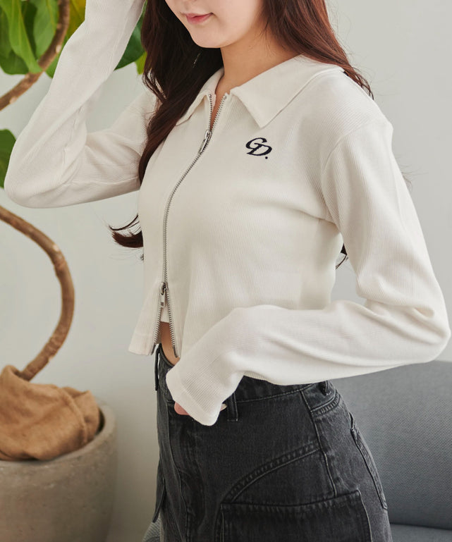 フロントのダブルジップがポイントのリブニットトップス!