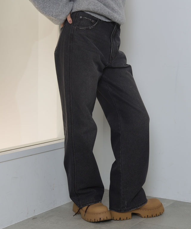 ストレートデニムパンツ/ブラック モデル:163cm M着用