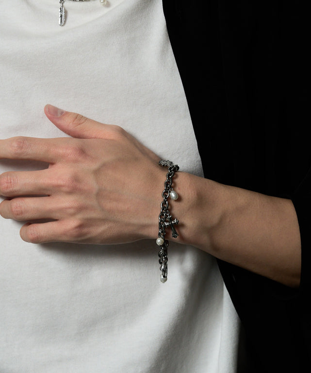 シティーボーイのスタイングも映えるシルバーアクセ。