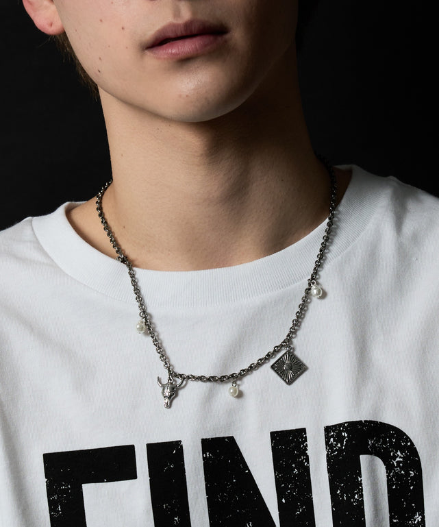 シティーボーイのスタイングも映えるシルバーアクセ。