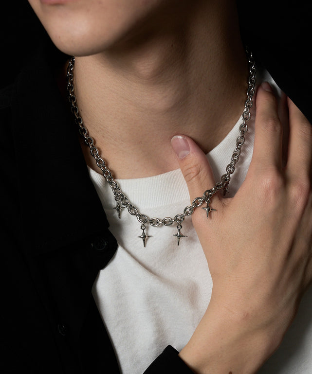 モチーフチャームが等間隔で5つ施されたネックレス。