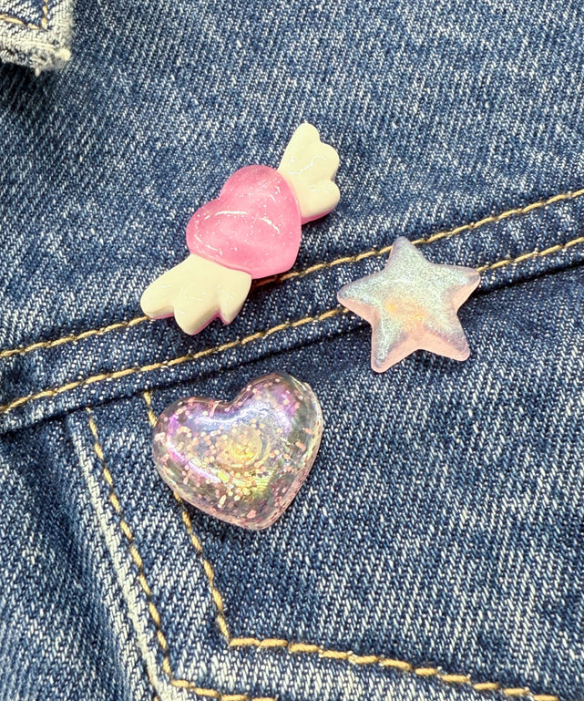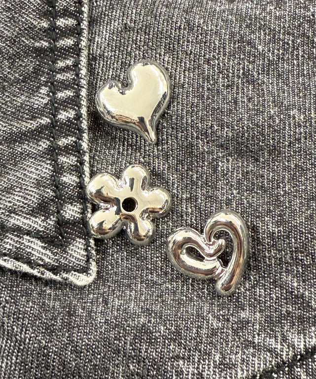 セットではもちろん、単品でもさりげなく付けられるピンズ。