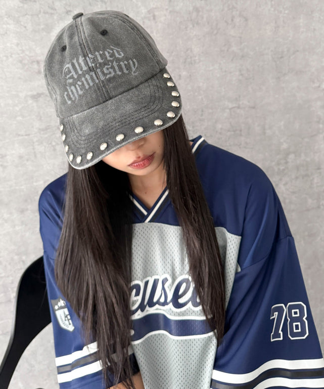つば(バイザー)部分にスタッズがついたかっこいいキャップ。