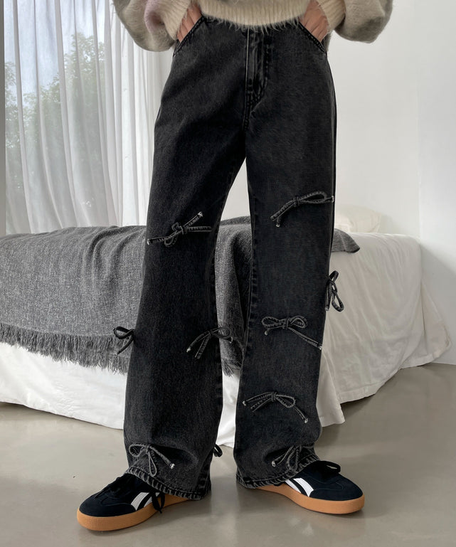 リボンストレートデニムパンツ
