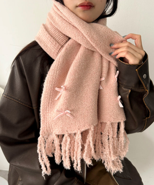 【小さなリボンが主役!冬のふわもこストール】