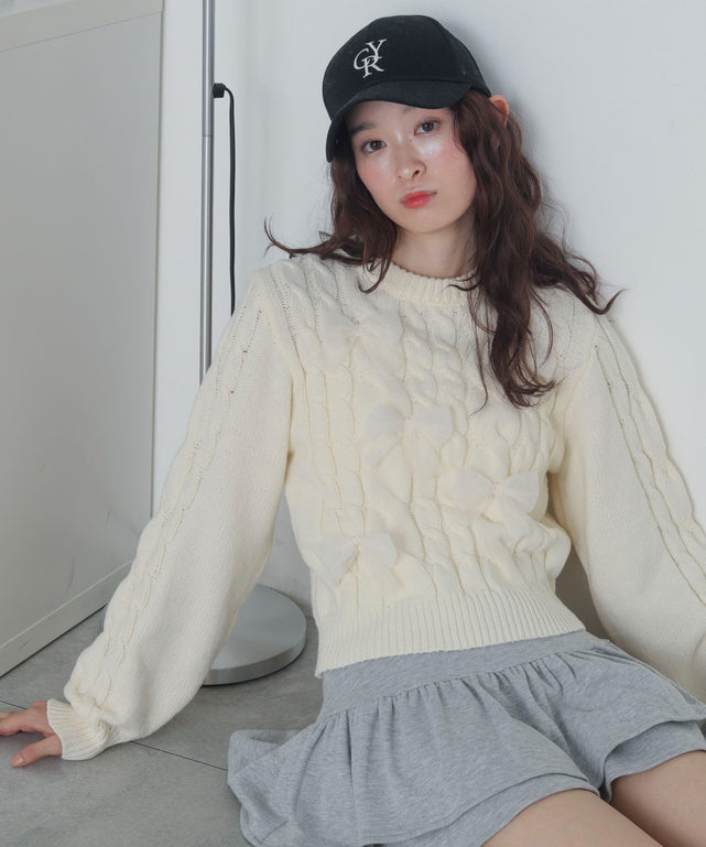 【甘さとこなれ感を両立◎チュールリボンケーブルニット】