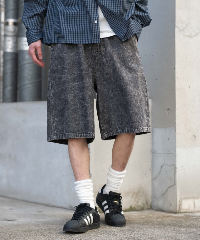 イージーコットンハーフパンツ/デニムブラック モデル:182cm L着用