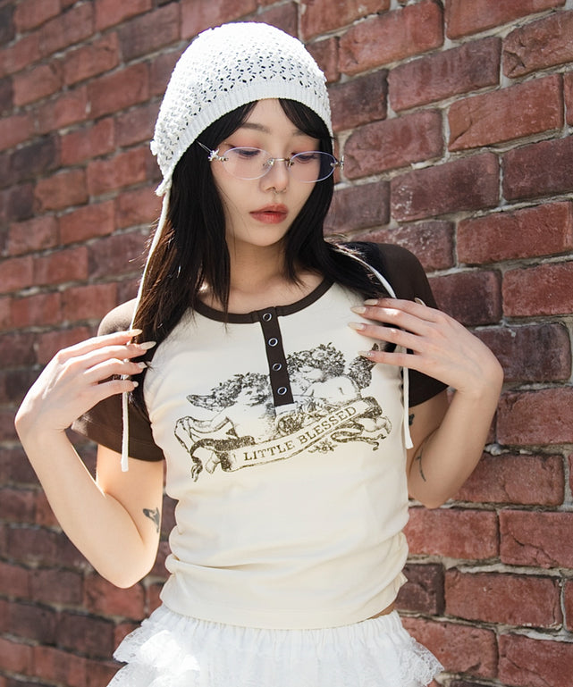 【カジュアルに着映えるグラフィックラグランヘンリーネックT】
