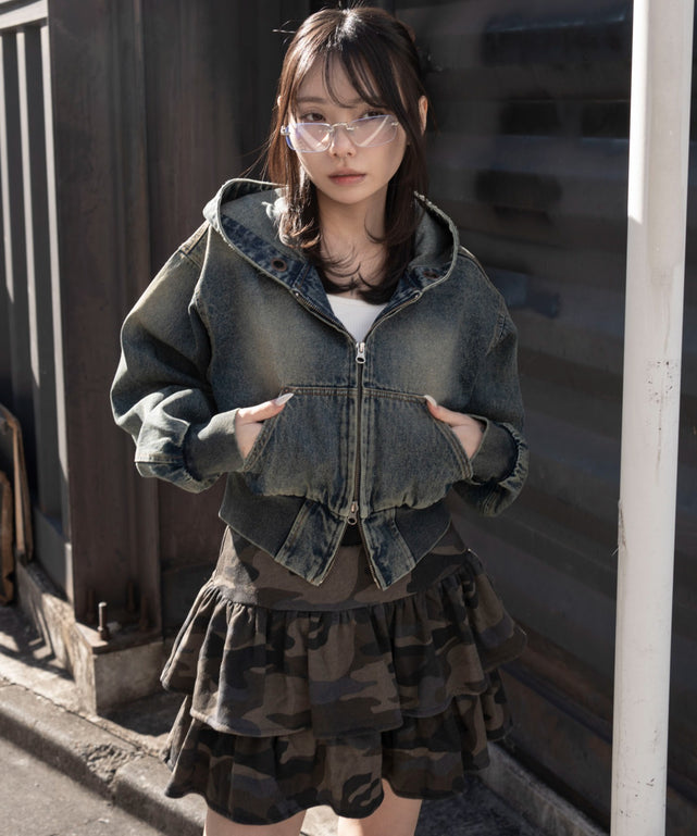 デニムショートフードブルゾン